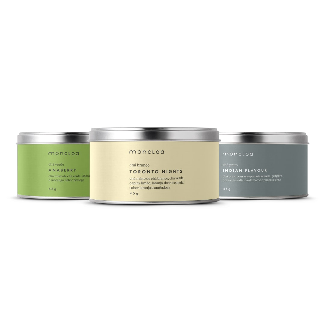 Toronto Nights (Chá Branco) – Equilibrado e aromático, combina chá branco e chá verde com capim-limão, laranja-doce, canela e um toque adocicado de amêndoas. Um chá leve e cheio de personalidade, perfeito para momentos de pausa e conforto.