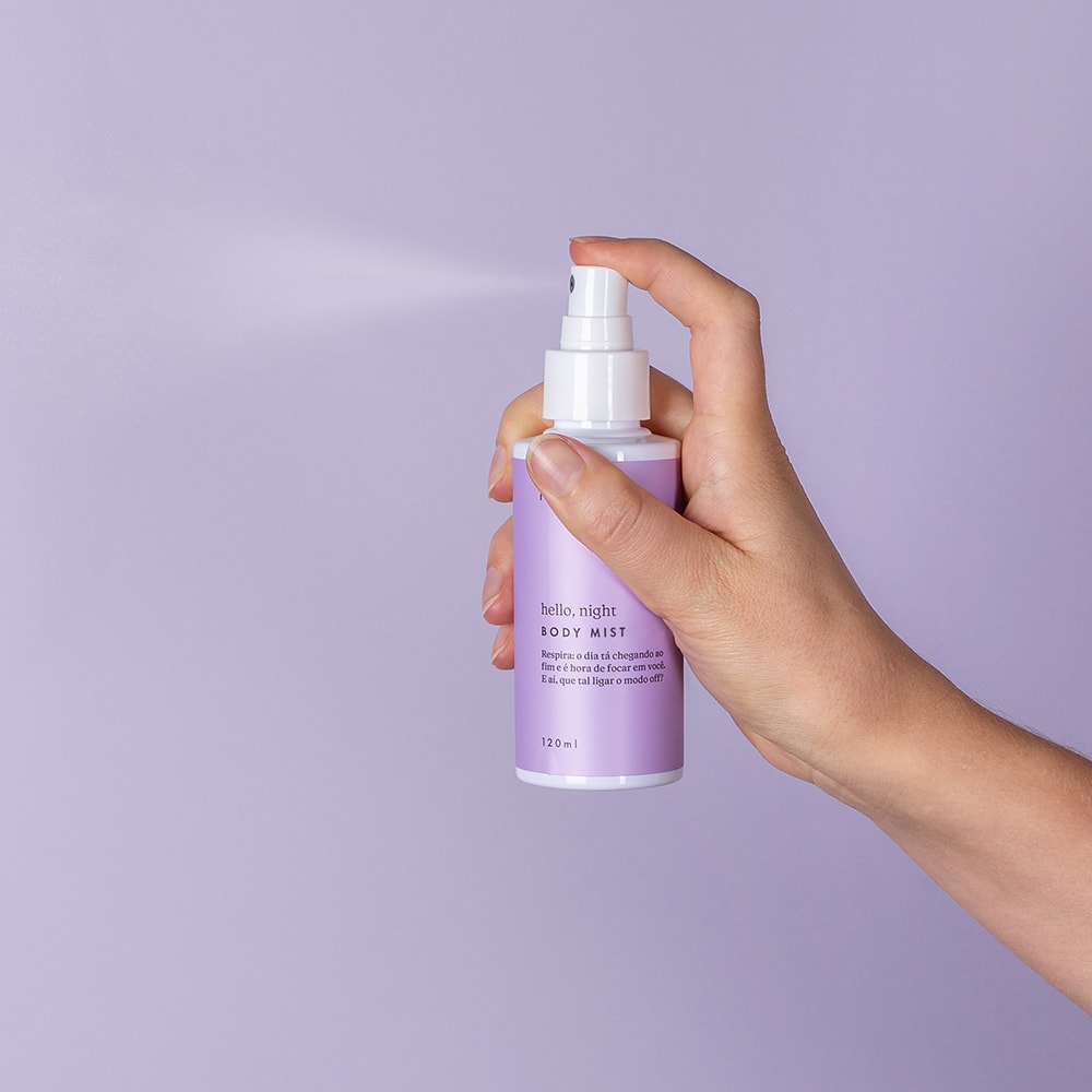 Respirar, já que o dia tá chegando ao fim e é hora de focar em você. O Body & Hair Mist é uma água perfumada e relaxante que pode ser usada todos os dias no corpo e no cabelo. Tudo para preparar você para uma boa e revigorante noite de sono. E aí, que tal ligar o modo off pra tudo aquilo que ficou pra trás?