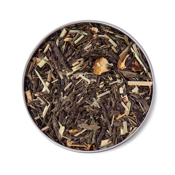 Chá misto de chá verde, capim-limão e limão com gengibre. Sabor gengibre.