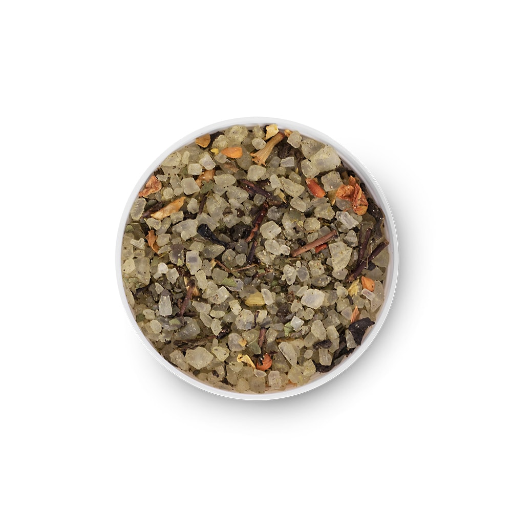 Cloreto de sódio, sulfato de magnésio, caulim, óleo de semente de uva, tocoferol, óleo essencial de ylang ylang, óleo essencial de limão siciliano, folha de chá branco, folha de chá verde, fruto de rosa canina, flor de jasminum officinale, citral, limoneno.
